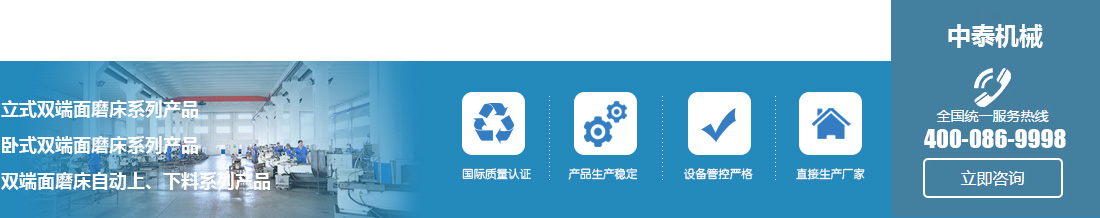 公司主要產(chǎn)品有:雙端面磨床系列產(chǎn)品(M7650、MY7650、MW7650、M7660、M7675A/B、M7675D、MKW7675、MKW7660、M7675、MY7675)等,及五金鍛壓設(shè)備。